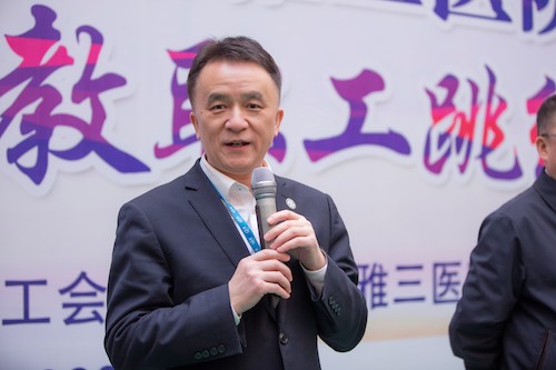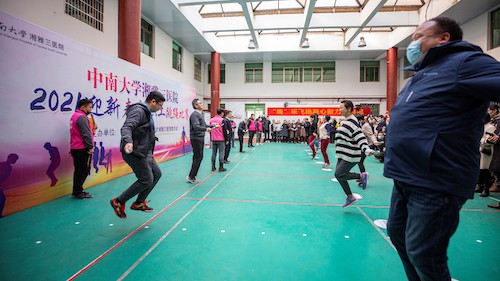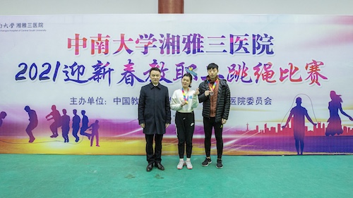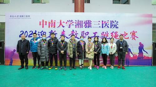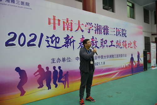 为丰富教职工的精神文化生活,庆祝即将来临的新春佳节, 展现医院教职工的风采与活力,营造春节欢乐气氛,进一步增加团队凝聚力,1月8日下午,中南大学湘雅三医院工会在综合楼中厅举办全院教职员工跳绳比赛,医院党委副书记、工会主席杨飞龙主持。