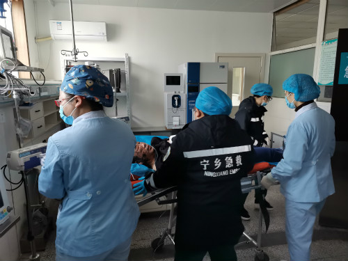 1月8日上午8:30,中南大学湘雅三医院急诊科接到通知,6名重症烧伤患者半个小时后要转入医院进行救治,时间紧,任务重,需要急诊科立即做好抢救准备。本次烧伤伤员人数较多、病情重,十分考验急诊科群体灾害事件应急反应能力。急诊科副主任(主持工作)孙传政及护士长郭美英立即启动群体灾害应急预案:一边将情况汇报医务部、护理部,并通知烧伤科、骨科,ICU做好抢救准备;一边紧急调动急诊外科医生、应急护士、呼吸治疗师迅速赶到科室,进行抢救场地、用物准备,并开放急诊复苏室,调试仪器设备,将接收患者的各个环节落实,所有一切准备工作不到10分钟全部到位。由烧伤整形外科主任周建大、烧伤重建专科主任彭浩、ICU李志凌副教授,骨科郭强医生,烧伤科杨永超医生,急诊科袁乐宏医生等组成的医疗抢救团队也在患者到达之前赶到了急诊科等候。
