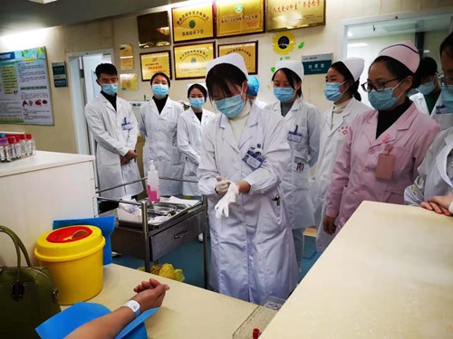 7日上午,首先进行了基础护理操作培训,培训的内容主要有静脉采血、皮下注射、静脉注射等。黄维英老师严格、仔细地向所有同学演示了静脉采血等操作的规范流程;王玲、余隽老师对操作的具体流程进行一一讲解,并详细指出操作中容易出现的问题。所有同学在老师们的指导下进行操作练习。