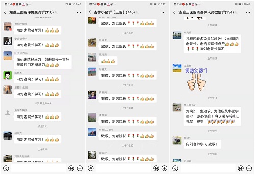 获奖通知当日,视频由关工委办公室转发后,得到刘浔阳老院长的学生、老同事、全院青年医务人员的大量收阅和转发,大家纷纷致敬刘浔阳老院长。有学生盛赞“学医当学刘浔阳,医界楷模,人生灯塔”,有的多次观看视频多次萧然起敬,有的说:“刘浔阳院长一生追求,为他所从事的医学事业呕心沥血!今天实至荣归”。