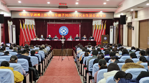 1月28日下午,中南大学湘雅三医院召开领导班子2020年度民主生活会通报会,党委书记何庆南代表医院党委通报医院领导班子2020年度民主生活会情况。全体院领导、中层干部、正副护士长参加了会议。