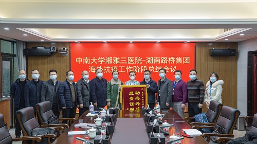 1月27日下午,中南大学湘雅三医院-湖南路桥集团海外抗疫工作阶段总结会议在湘雅三医院召开。医院党委委员、副院长欧阳文,湖南路桥集团党委副书记、总经理龚智辉出席。会上,湖南路桥集团向医院赠送“助海外抗疫、显责任担当”锦旗以表感谢。