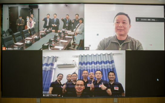 2月4日下午15点,中南大学湘雅三医院在综合楼一会议室召开援疆干部、援非医疗队及家属视频连线新春慰问会。医院党委书记何庆南,院长张国刚,党委副书记杨飞龙,党委委员、副院长欧阳文出席,中组部第10批、医院援疆干部刘火旺,第22批援塞拉利昂医疗队湘雅三医院全体队员——冯超、沈民仁、孙信、屈琳、曾丽雄、肖伟、王仟陆、向林军及其家属们,以及相关党总支书记、科室负责人、职能部门负责人等参加慰问会。