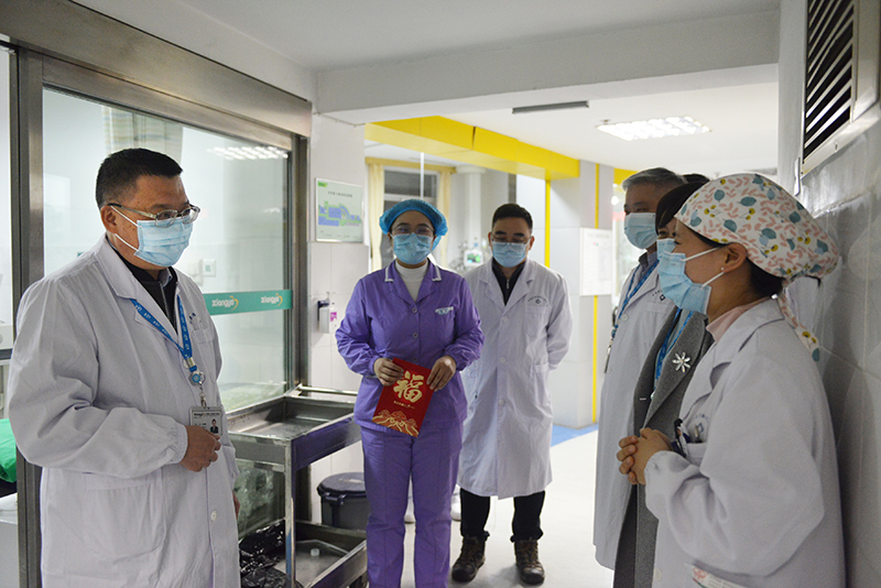 农历大年三十、正月初一,院领导何庆南、张国刚、杨飞龙、张劲强、朱晒红、黄飞舟、欧阳文、汤英以及相关职能部门负责人先后亲切慰问春节期间值班的职工,并探望部分住院病人,向他们送上新春的祝福和问候。