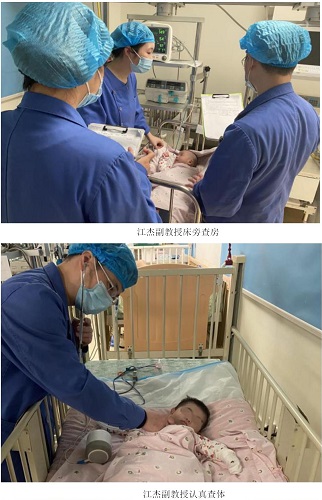 江杰副教授则如同往日一样早早带领大家例行查房,在查体的同时也不忘与患儿进行互动,和蔼可亲的态度如同爸爸般温暖,让每个患儿都感受到了亲人的关怀。