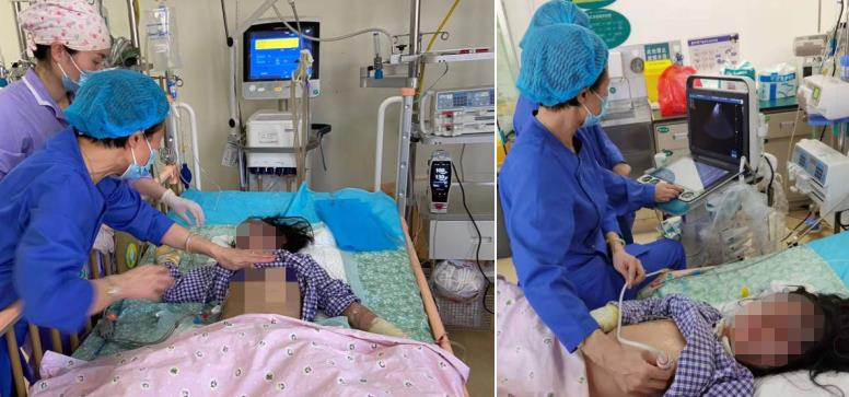 中午12点41分,在浏阳市人民医院烧伤科医师的护送下,两名奄奄一息的小患者平安转至PICU,陈淳媛和彭浩在患儿入科的第一时间赶到病房,启动MDT多学科合作诊疗,根据两个孩子不同情况,制定周密严谨的个性化治疗方案。随后又跟家属谈话,安抚家属的情绪。据悉,这是一对姐弟,姐姐7岁弟弟2岁,家人13号晚上睡觉前忘拔火炉电源半夜引发火灾,在家人的极力救护下,可怜的姐弟俩还是没能幸免于难,造成了悲剧发生,同时他们的家人也存在不同程度的烧伤,目前留在当地医院治疗。