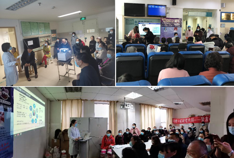 3月11日,在主任张浩、副主任王建文的统筹安排下,肾脏内科于上午9:30分别在内科楼五楼会议室、老干楼四楼38病室,中午12:30在血透室候诊大厅举办了世界肾脏日肾友关爱活动,以迎接第16个世界肾脏日。