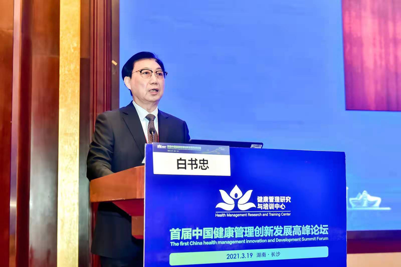 中国健康促进基金会终身荣誉理事长、中华医学会健康管理学分会终身荣誉主任委员白书忠教授在大会致辞中介绍了健康管理在我国近二十年的发展历程,他指出中南大学湘雅三院作为首个“健康管理医学学科创建中心”和“高血压防治优质健康管理医学服务创新中心”,是学会经过反复调研、考察和综合比较后做出的决定。主要目的是通过第一个“双中心”树立,推动全国健康管理医学新学科与慢病健康管理医学服务实践的真正落地,并起到先行先试和引领、激励和推动作用。