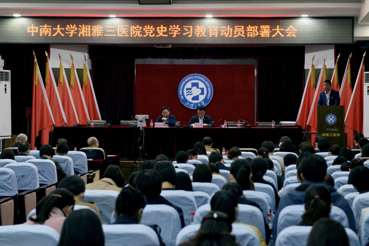 3月25日下午,中南大学湘雅三医院在门诊楼五楼多功能厅召开党史学习教育动员部署大会,深入学习贯彻习近平总书记在党史学习教育动员大会上的重要讲话精神和教育部党组、国家卫生健康委员会、学校党委有关会议精神,按照中央《关于在全党开展党史学习教育的通知》要求和学校党委统一部署,对医院开展党史学习教育进行全面动员部署。中南大学党委常委、副校长陈立章出席会议并讲话。医院党委书记、医院党史学习教育领导小组组长何庆南作动员讲话。全体在院院领导及医院全体中层干部参加会议。会议由党委副书记杨飞龙主持。