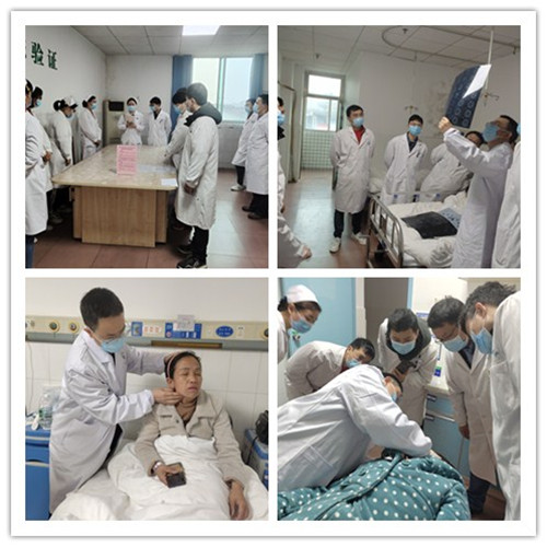 当天7:40,中南大学湘雅三医院耳鼻咽喉头颈外科贺广湘教授、王天生副教授、陈玉主治医师及肖益芳、吴牡丽主管护师一行6人便到达医院。活动分为两个部分,首先王天生副教授带队进入耳鼻喉科病房进行了典型专科病例的教学查房,指导年轻医生如何培养临床思维能力,并进行了耳石症手法复位的实操指导;接着对疑难病例进行了详细的病史询问和床旁查体,指导给出切实可行的治疗方案。