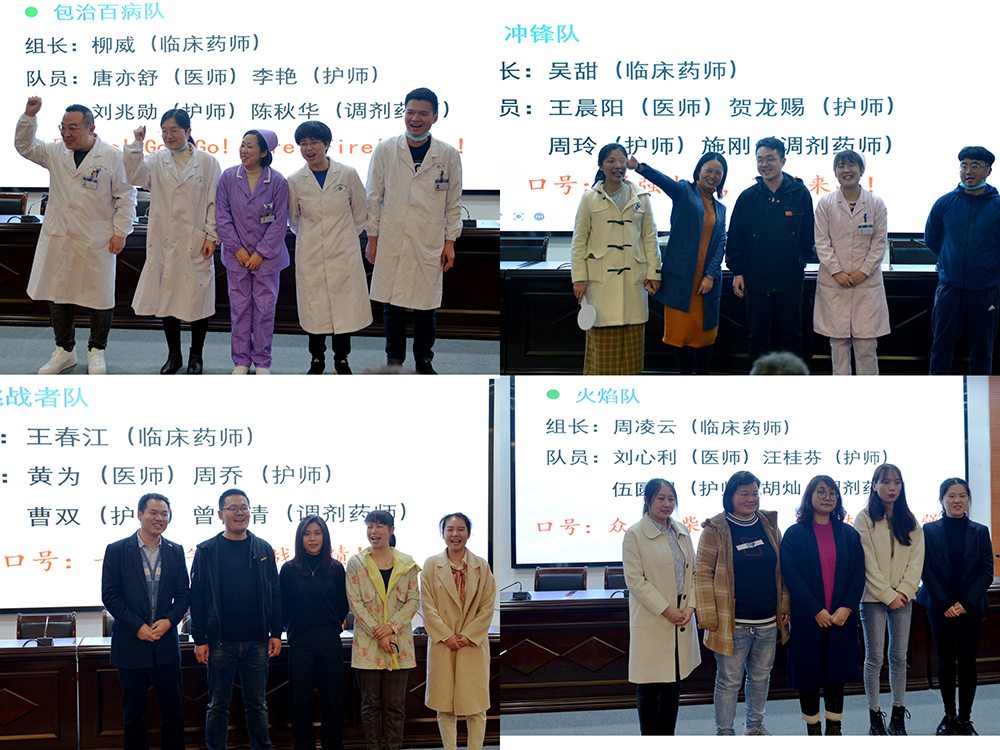 经过激烈的角逐和紧张的比拼,最终由来自于药学部的临床药师周凌云,产科医师刘心利、2病区护师汪桂芬、肝胆胰外科主管护师伍圆圆、调剂药师胡灿组成的火焰队一路披荆斩棘,夺得此次比赛的一等奖;来自于药学部的临床药师柳威,急诊科医师唐亦舒、内科ICU护师李艳、急诊科护师刘兆勋、调剂药师陈秋华组成的包治百病队获得二等奖,由药学部临床药师王春江,肝胆胰科医师黄为、30病区护师周乔、急诊科护师曹双、调剂药师曾含清组成的挑战者队和药学部临床药师吴甜,30病区医师王晨阳、37病区护师贺龙赐、移植科护师周玲、调剂药师施刚组成的冲锋队则并列获得比赛三等奖。比赛还设立了观众有奖问答环节,在宣传用药知识的同时也巩固了大家的“青年大学习-一起学党史”知识,充分调动了观众的积极性,扩大了参与度。