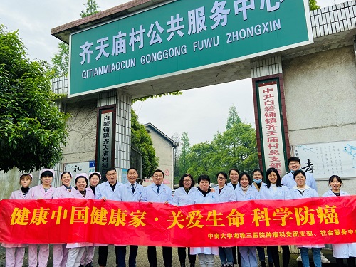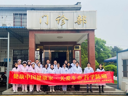4月15日上午,在第27届“全国肿瘤防治宣传周”启动当日,中南大学湘雅三医院肿瘤科党团支部联合医院社会服务中心、医务社工与志愿者服务指导中心、望城区疾控中心,专程前往长沙市望城区白箬铺镇卫生服务中心,开展以“健康中国健康家——关爱生命科学防癌”为主题的肿瘤科普讲座、义诊及指导查房等活动。活动旨在贯彻党中央、国务院对癌症防治工作的决策部署,推动落实健康中国癌症防治专项行动,提高全社会癌症防控意识,营造全民防癌抗癌的良好氛围。