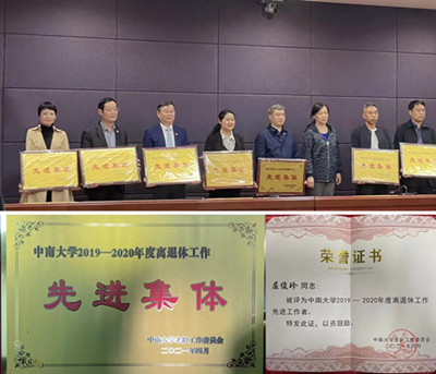 中南大学副校长朱学红为先进集体和先进个人颁奖。朱校长对学校离退休工作人员的辛勤努力给予肯定,她指出要从党的百年辉煌历程中深刻感悟老同志的历史功绩和离退休工作的政治责任,引导老同志珍惜光荣历史,不忘革命初心,永葆政治本色;要从新时代的历史特点中,充分认识和全面加强离退休干部的政治建设、思想建设和党组织建设;要从充分认识老同志的独特优势中,充分发挥老同志的巨大正能量;要从关心解决老同志的所思所盼中努力提升离退休服务管理水平。
