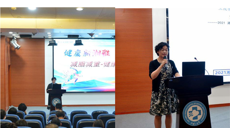 随后,营养科主任刘敏教授以“窈窕身材,健康减脂”为题,讲解了定义肥胖的标准,指出肥胖的危害、科学减脂方法,建议大家远离高糖、高油、高盐。她指出,众多减肥方法中,能量恒定、平衡膳食+运动才是最佳的减肥办法。