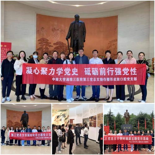 5月21日下午,中南大学湘雅三医院第三党总支烧伤整形皮肤口腔党支部党员及预备党员前往汨罗市,参观任弼时纪念馆及任弼时同志故居,开展“凝心聚力学党史,砥砺前行强党性”主题党日活动。