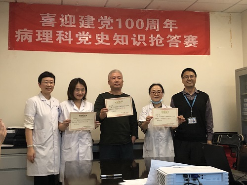 通过此次党史知识竞赛,病理科全体医务人员重温了建党的伟大历程,进一步加强对党史的学习、认知,加深了对党章和党的基本理论、基本路线等知识的理解,努力做到学史明理、学史增信、学史崇德、学史力行,要不忘初心牢记使命,激发全体职工爱党爱社会主义的巨大热情。进一步坚定理想信念,增强科室向心力、凝聚力,增强“四个意识”、坚定“四个自信”、做到“两个维护”,将党史学习教育落到实处,以勇于担当、开拓创新、奋发有为的精神状态,坚守岗位,牢记责任担当,努力做好本职工作,更好的服务患者,进一步推动医院高质量全方面专业发展发挥积极的促进作用,为实现“中国梦”贡献一份力量。
