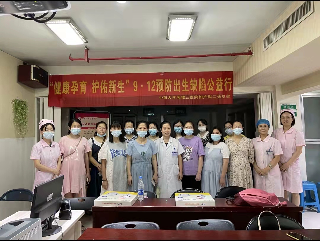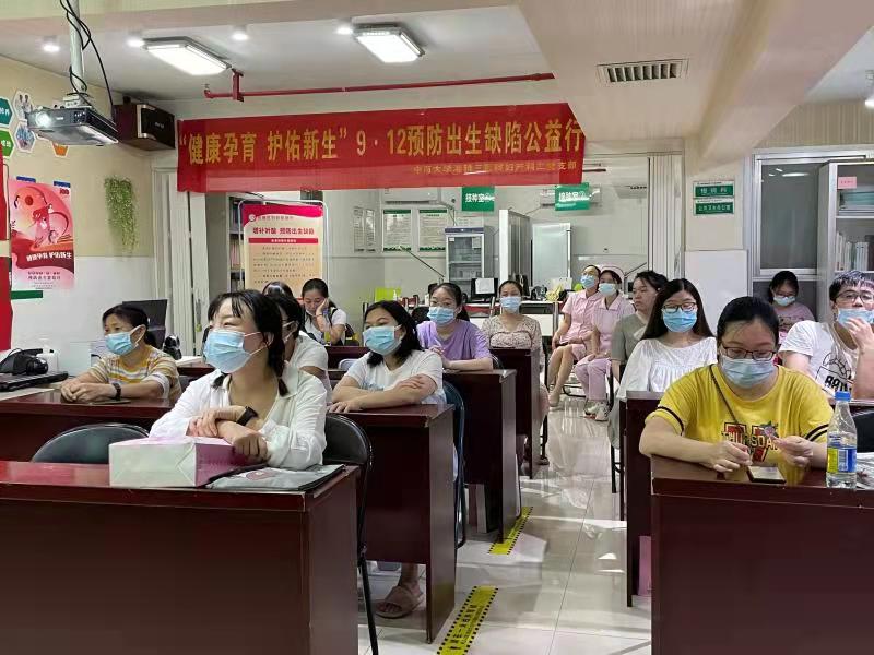 9月12日上午,中南大学湘雅三医院妇产科二党支部以“健康孕育,护佑新生”为主题,成功举办预防出生缺陷日健康教育公益活动。正值“十四五”时期,妇产科二党支部贯彻落实《中共中央国务院关于优化生育政策促进人口长期均衡发展的决定》《健康中国行动(2019-2030年)》,二党支部成员参与组织活动,从专业角度给大家宣传普及出生缺陷防控知识,旨在进一步宣传出生缺陷防控措施,提高公众优生意识,动员居民共同参与出生缺陷防控工作。此次活动在咸嘉湖街道社区卫生服务中心顺利开展,多名辖区内常住的孕妈妈们及感兴趣的居民纷纷来参加宣教活动。