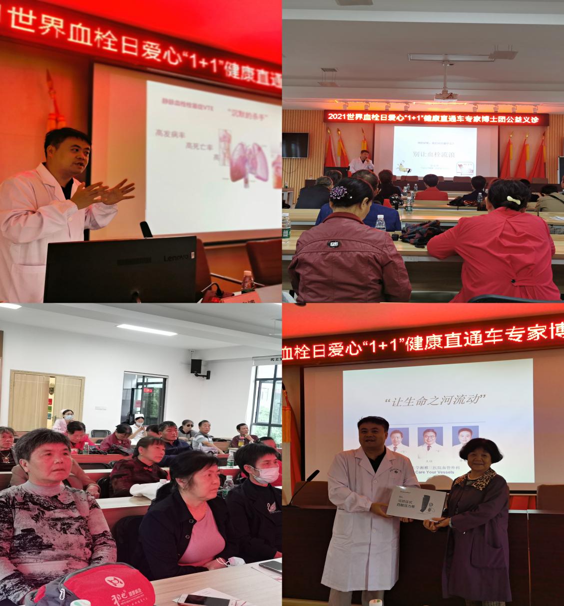 专家义诊结束后,徐宏博博士为居民进行生动有趣的血栓预防知识讲座,通过真实案例、现场脚丫操教学、有奖竞答等方式讲解血栓防治知识。现场气氛热烈,居民们认真学习、答题活跃、提问积极,纷纷表示学到了很多健康知识,受益匪浅。
