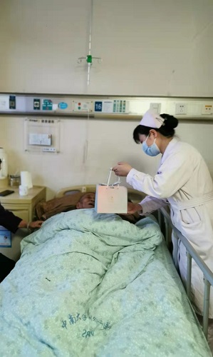 护士长徐龙发言,感谢所有参会的病友和家属,她希望老年朋友的安全能得到子女和社会的关心和关注,也希望爷爷奶奶们能够将这些健康知识运用到生活当中去,安享晚年。活动最后,护士长带队,为病区60岁以上老年患者送上重阳节小礼品,爷爷奶奶们慈祥和蔼的笑容是我们最大的欣慰。