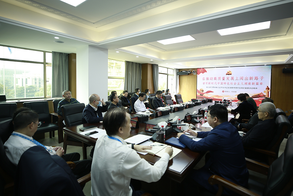 在解读习近平总书记2020年视察湖南时的重要讲话精神时,何庆南介绍了习近平总书记在湖南考察的基本概况,重点讲述了“半条被子”等故事,要求大家谨记习近平总书记嘱托,不断接受教育、接受洗礼,始终坚持全心全意为人民服务。习近平在听取湖南省委和省政府工作汇报后,对湖南各项工作取得的成绩给予肯定,并对湖南发展提出了一系列要求。针对习近平提出的“要坚持以人民为中心的发展思想,着力办好群众各项‘急难愁盼’问题”的要求,何庆南表示,作为医疗国家队,我们可以大有作为。习近平在基层代表座谈会上还强调,要坚定理想信念,注重学习提升,矢志艰苦奋斗,从一点一滴做起,把小事当大事干,踏踏实实把正在做的事情做好,靠勤劳双手成就属于自己的人生精彩,共同创造我们的幸福生活和美好未来。