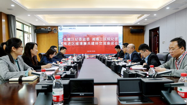 “以清为美,以廉为荣,打造清廉岳麓新风尚、新名片。”11月3日,岳麓区纪委常务副书记、监委副主任熊颖佳一行来到中南大学湘雅三医院调研,双方在综合楼一会议室召开推进区域清廉共建体交流座谈会。医院党委副书记、纪委书记张劲强以及纪委、监察办公室、社会服务部相关同志出席座谈。纪委副书记、监察办主任万响主持座谈会。