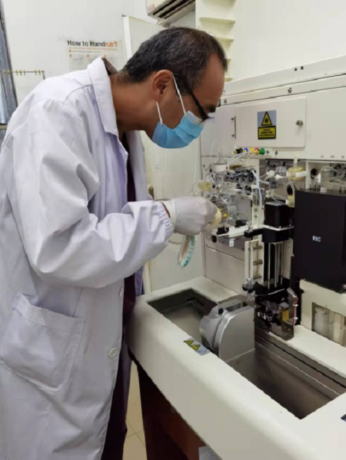 清点完试剂结束后,屈琳便来到科里与塞方同事一起着手开始各项检验工作的开展,其中最重要的工作之一便是操作全自动血液分析仪。他们所操作的设备在国内很常见,但在塞拉利昂,这是来之不易的唯一一台全自动五分群血球分析仪。自新冠肺炎疫情全球爆发以来,中塞友好医院内检验科现有仪器设备因为缺乏妥善维护保养,大部已经损坏而无法使用,可当我国捐赠的仪器设备送抵塞国后,又面临了新的难题:由于西非没有该仪器品牌的售后,疫情期间厂家又无法像往常在国内一样指派工程师进行机器的安装与调试,所以新机器到了也依旧无法投入使用。无奈之下,屈琳只能顶着巨大压力、迎难而上,决定自行安装仪器。通过与国内工程师的反复沟通,他花费大量时间和精力在钻研仪器的安装调试说明和指南上,直到自己已完全熟悉设备的各项参数与性能。功夫不负有心人,在连续一个星期紧张地安装和调试设备后,仪器终于成功运转起来了。
