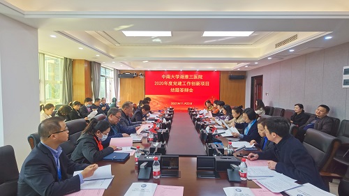 11月23日下午,中南大学湘雅三医院组织开展2020年度党建工作创新项目结题答辩会。医院党委办公室、党委宣传部、纪委(监察)办、工会、团委、医务部、护理部、门诊部、财务部负责人及部分总支书记参加会议并担任评委。答辩会由党委办公室主任许泽华主持。