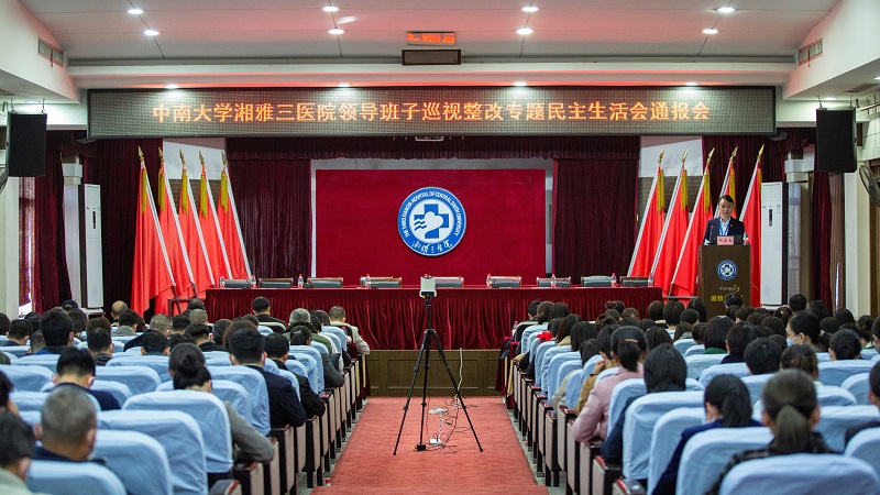 11月25日下午,中南大学湘雅三医院领导班子巡视整改专题民主生活会通报会在门诊5楼报告厅召开,医院党委书记何庆南通报了专题民主生活会情况。中南大学党委常委、副校长陈立章出席会议并讲话,医院领导班子成员、全体中层干部、正副护士长参加会议。会议由医院党委副书记杨飞龙主持。
