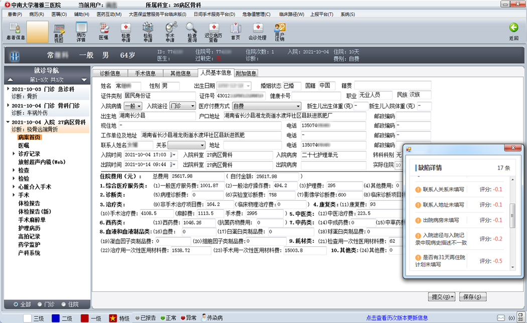 图3.中南大学湘雅三医院病历AI质控功能界面