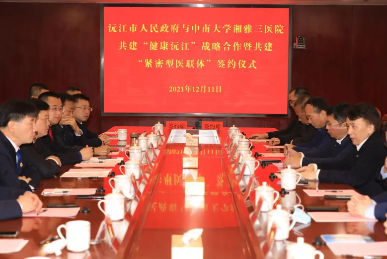 12月11日,中南大学湘雅三医院党委书记何庆南、院长张国刚带领医院领导班子和相关职能部门人员一行前往沅江市,与沅江市人民政府签约“紧密型医联体”,共建“健康沅江”。签约仪式在沅江市人民政府举行,沅江市市委副书记、统战部部长候耀森主持,沅江市委书记杨智勇,市委副书记、市长罗必胜及孟智勇、刘武、周军、叶思劲等市领导出席仪式。