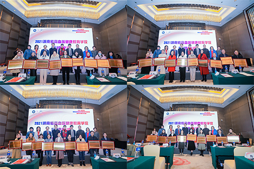 随后,与会领导为2021年度新增的57所高血压健康教育学校进行授牌。同时为高血压健康教育分校赠送了《高血压患者的自我管理手册》。