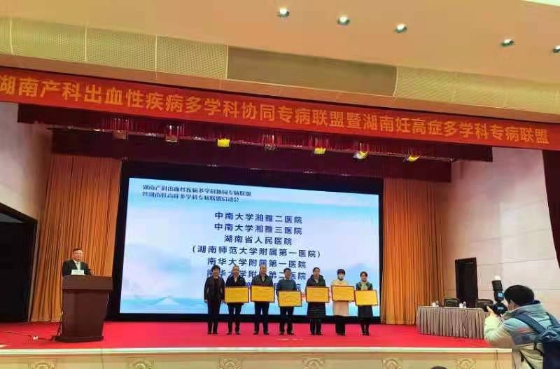 为贯彻执行《湖南省人民政府办公厅关于推进医疗联合体建设和发展的实施意见》(湘政办发「2017」56号)文件要求,推动建设全省产科出血性疾病、妊娠期高血压疾病多学科诊疗与救治标准化、同质化、规范化的医疗模式,建设高水平的诊疗与管理中心需要,湖南产科出血性疾病多学科协同专病联盟、湖南妊高症多学科专病联盟成立大会暨学术会议于2021年12月25日在长沙宾馆举行。会上,湘雅三医院被授予湖南省妊高症多学科专病联盟副主席单位、湖南省产科出血性疾病多学科协同专病联盟副主席单位。