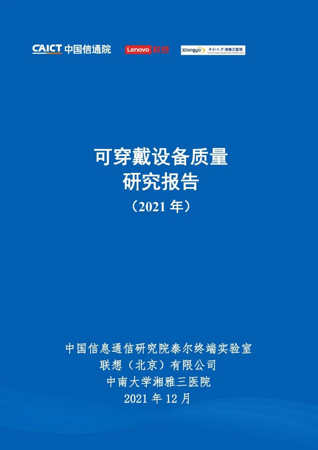 2021年12月22日,中国信通院举办的2022中国信通院ICT+深度观察报告会“行业数字化转型分论坛”在京召开。会上,中国信息通信研究院(以下简称“中国信通院”)泰尔终端实验室联合中南大学湘雅三医院袁洪教授团队、联想(北京)有限公司共同研究编制的《可穿戴设备质量研究报告(2021)年》发布。该报告有效推动医疗健康行业数字化转型,加快健康数据在医疗行业的应用,促进可穿戴设备行业的健康发展,厘清质量评价所面临的关键问题。
