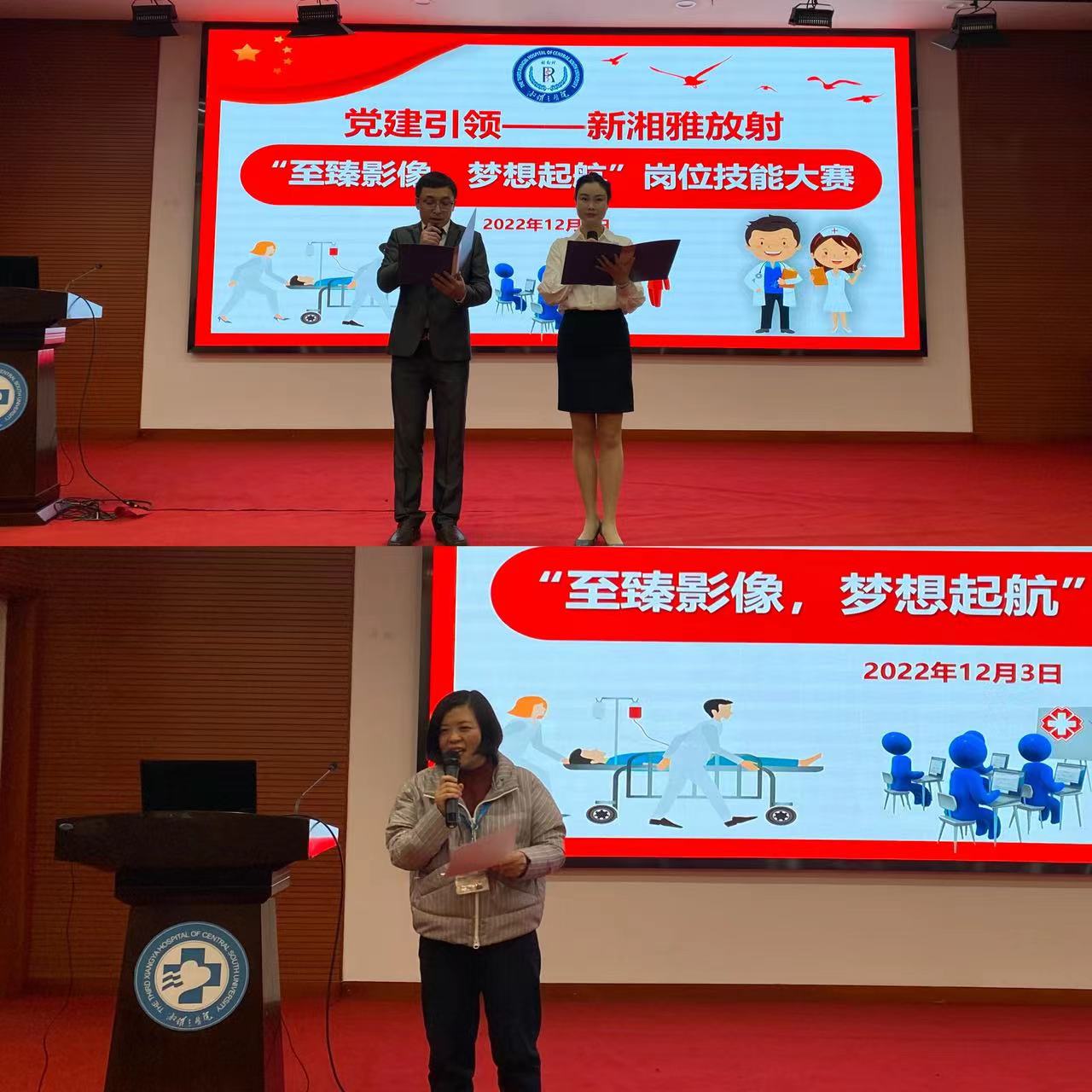 党的二十大以来,医院教职工热议二十大报告,工作热情无比高涨。12月3日,第五党总支放射科党支部、第五分工会放射科在外科楼二楼会议厅举办“党建引领——至臻影像,梦想起航”职工岗位技能大赛。湘雅三医院首席专家王维教授、第五党总支书记余希应邀出席,湘雅医院放射科周晖、湘雅二医院放射科陈柱和湘雅三医院放射科主任容鹏飞等8名教授担任评委。放射科介入组吴作为、护理组李心园主持。来自介入组、诊断组、技术组、护理组、科研组的9名业务骨干参加本场决赛。