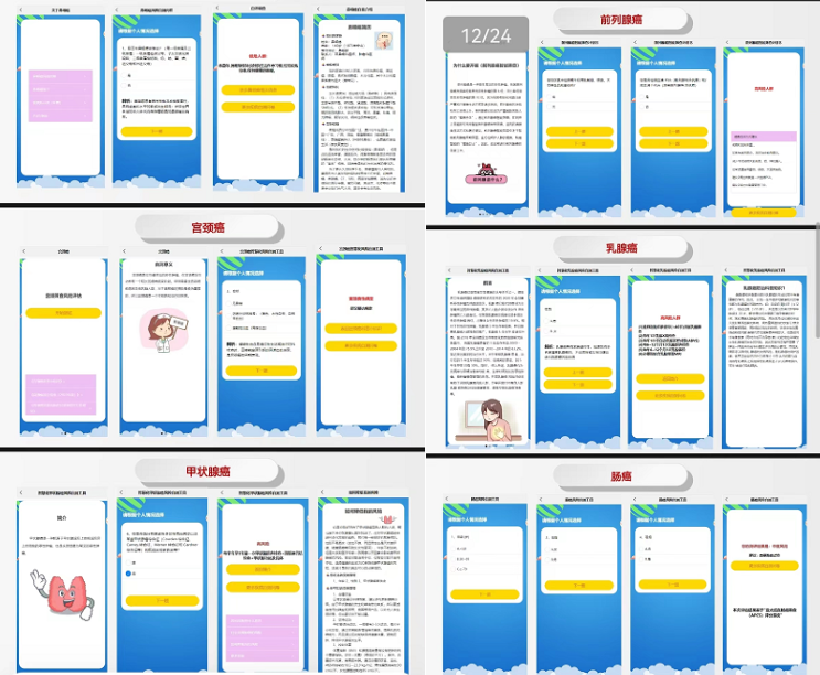 癌症防控是世界性难题,目前我国年新发癌症病例约380万,死亡约229万。已成为严重威胁我国居民健康的重大公共卫生问题,影响着国家经济和社会的可持续发展。2019年,国家印发《健康中国行动——癌症防治实施方案(2019—2022年)》(以下简称《实施方案》)明确指出早诊早治和规范诊疗对癌症防治的重要性,要求积极促进癌症的早发现、早诊断、早治疗。本次比赛的开展正是为了充分贯彻落实《实施方案》这一要求,在提升职工健康管理岗位技能的同时,通过制作高发恶性肿瘤的智慧化风险自测工具,向老百姓推送普及肿瘤相关医学知识的同时,提供一个简单易行的的方法帮老百姓进行肿瘤风险自测,从而实现主动健康和肿瘤健康管理的早筛查、早评估、早干预。