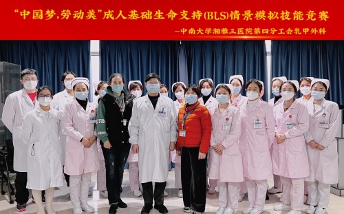 12月13日下午,中南大学湘雅三医院乳甲外科在外科楼17楼示教室举办“劳动美 技能美”情景模拟基础生命支持岗位技能大赛。此次竞赛由护士长王玲主持,特邀第四党支部书记孙慧蓉、乳甲外科主任钱立元、科护士长龚妮为比赛做指导及点评。