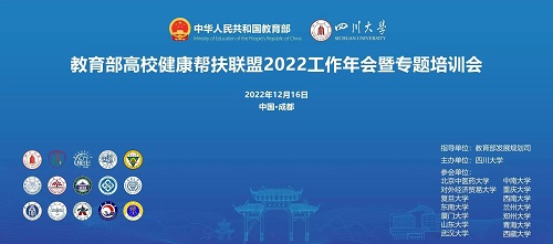 12月16日,教育部高校“健康帮扶联盟”2022年工作年会暨专题培训会在四川大学望江校区召开,会议线上线下同时举行。中南大学湘雅三医院医务部副主任刘作良应邀在会上作专题分享,教育部发展规划司、四川省教育厅、四川大学及高校“健康帮扶联盟”15所成员高校领导和健康领域相关专家、帮扶一线干部师生近百人参会,按照中南大学校办工作部署,中南大学校办王馨、医院帮扶专干王莎亚等参加线上会议。