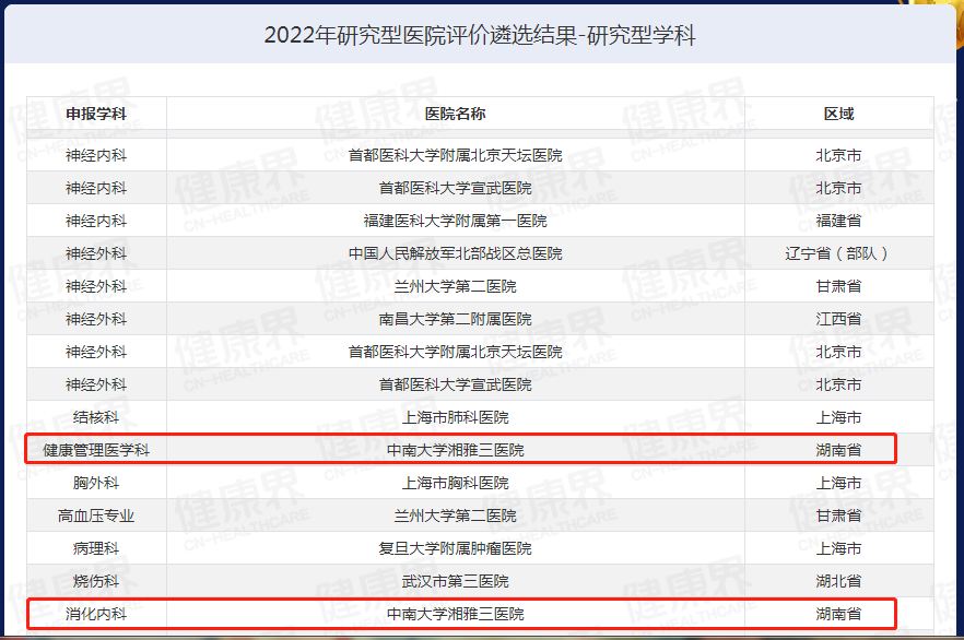 中国研究型医院评价遴选结果链接:http://research-hospital.cn-healthcare.com