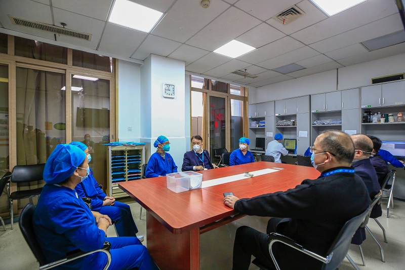 何庆南书记一行首先走访慰问了孙传政团队、罗令团队、彭浩团队及何智辉团队。他表示,在过去的一年中,以孙传政、罗令、彭浩、何智辉四位专家为首的四支医疗团队,在“4.29”“10.21”等多项急难险重任务中表现突出,保障了人民群众的生命安全,充分展现出新湘雅人在面对重大突发事件时的应急抢救能力,和新湘雅人作为医者的使命与担当。何庆南向他们表达了感谢和慰问,送上了新春的美好祝愿,希望来年大家继续团结奋斗,为医院高质量发展添砖加瓦。