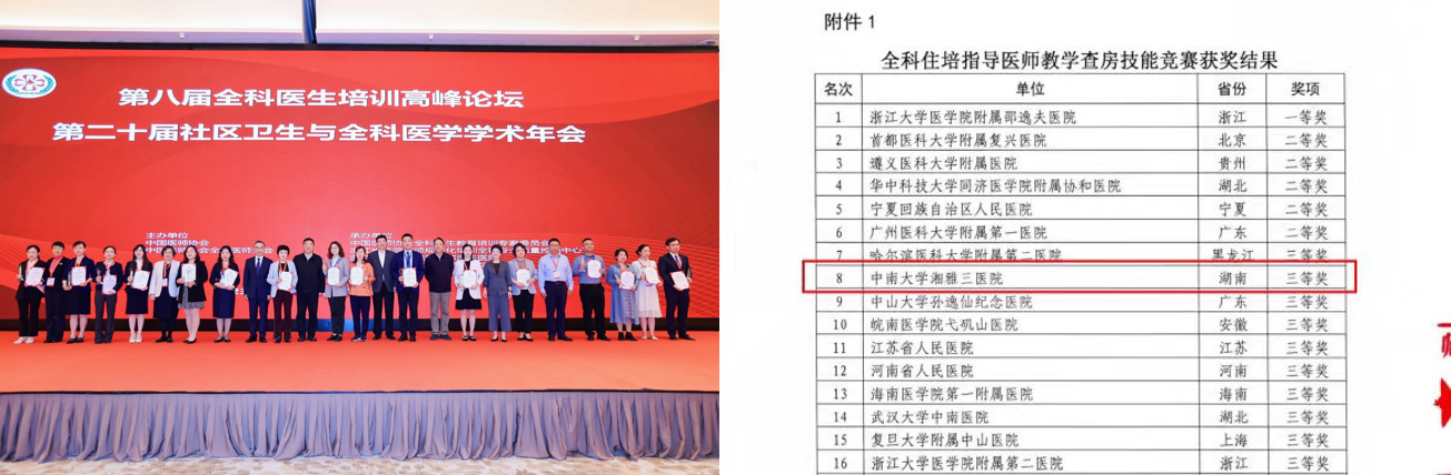 本次在全国教学技能竞赛中获奖并率先实现湖南省教学查房国赛零的突破,既是对科室教学工作的一种肯定,也让团队看到了自身与全国更优秀单位之间的差距,对全科教学质量和水平提出了更高的要求。它将成为湘雅三医院全科医学科的教学新起点,激励科室全体师生不断追求卓越和创新发展的奋斗精神,进一步提升教学水平,为推动湖南省乃至全国全科医学教育事业的发展做出更大的贡献。