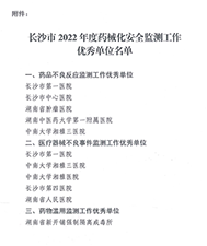 据悉,在3月底公布的《国家药品不良反应监测中心关于表扬2022年全国药品不良反应监测评价单位的通知》中,医院在医疗器械和药品不良事件报告责任中表现突出,入选“2022年度受表扬的医疗机构”,是湖南省入选的2家医疗机构之一。