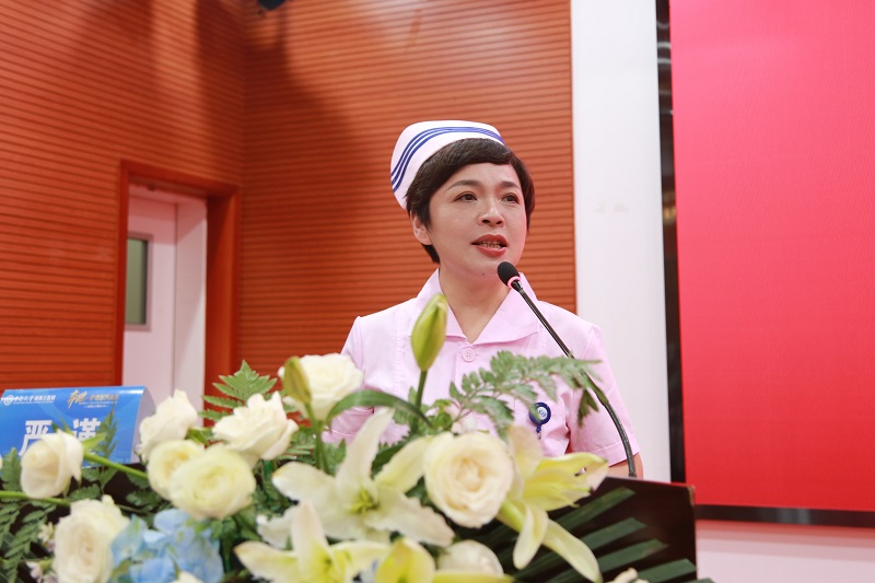 湖南省护理学会理事长孙向明代表学会向临床一线的护理人员致以节日的问候,同时也表达了对新湘雅护理事业发展的愿景。她指出,要追求护理的科学与艺术;也要追求与时俱进,适应时代的变化,为健康湖南的发展注入新的活力。她也表示,省护理学会将一如既往地支持新湘雅护理工作,不断助力提升护士在政府、公众和影响医疗健康决策者心中的价值。
