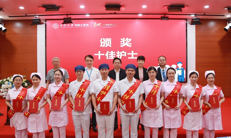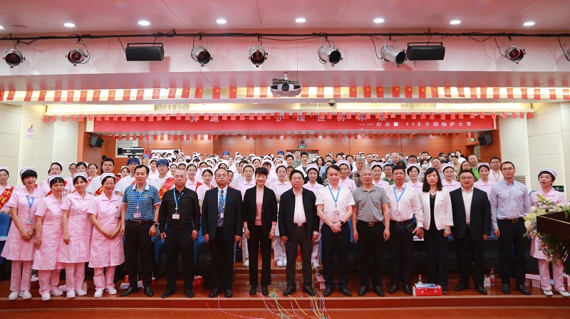为纪念第112个国际护士节,5月6日下午,中南大学湘雅三医院在外科楼二楼学术报告厅召开护士节表彰大会。中南大学党委常委、副校长陈立章,湖南省护理学会理事长孙向明,湖南省卫生健康委员会医政医管处三级调研员谢爱清出席。医院全体院领导、临床科主任代表、各职能部门负责人代表,以及护理部和护理教研室成员、获奖人员代表参加。表彰会由医院副院长孙传政主持。