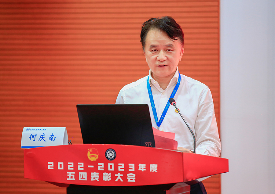 院党委书记何庆南做总结讲话。他代表医院党委向团员青年们致以节日的问候,并向会议的召开及受表彰的先进集体和优秀个人表示热烈祝贺,对团省委、湖南省卫健委、中南大学等对医院工作的指导和支持表示感谢。他给予了医院共青团工作高度肯定和认可,并对全体新湘雅青年提出三点希望:一是强化凝心铸魂,做忠诚于党的追随者;二是践行服务宗旨,做高质量发展的贡献者;三是坚持守正创新,做文化发展的开拓者。他希望青年朋友们要以深入开展习近平新时代中国特色社会主义思想主题教育为重大契机,以实际行动践行“请党放心,强国有我”的青春誓言,努力为“健康中国”建设贡献新湘雅青年的智慧和力量。