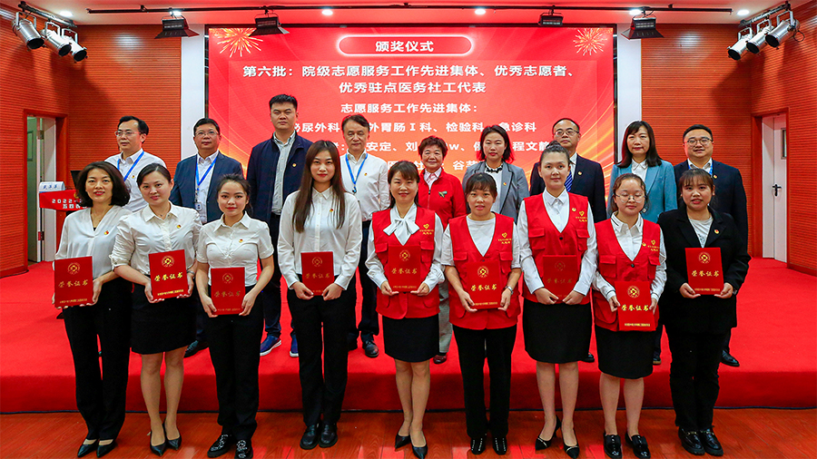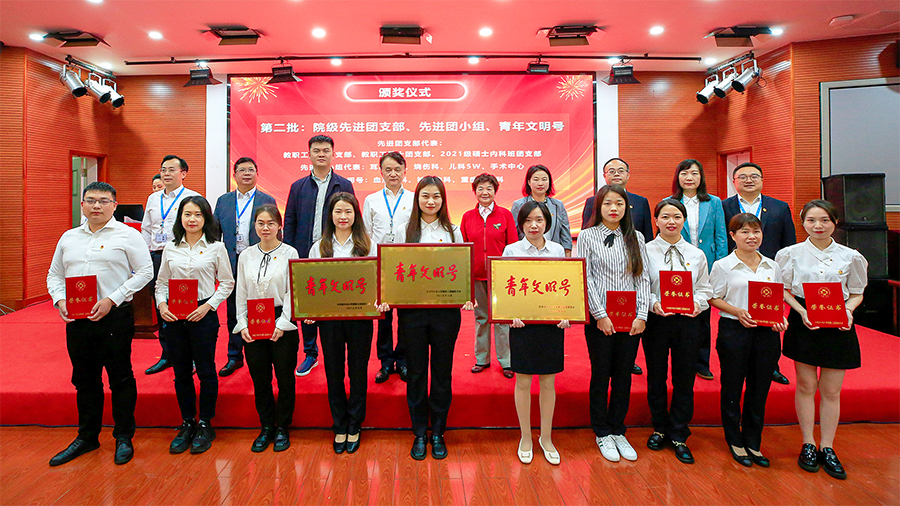 在欢快的旋律中,全体与会领导为国家级、省级、市校级荣誉获得者代表,院级先进团支部、先进团小组、青年文明号获得者代表,院级十佳青年、院级青年岗位能手、院级十佳研究生获得者,院级志愿服务工作先进集体、优秀志愿者、优秀驻点医务社工及校院级优秀团干团员等奖项获奖者代表颁奖。