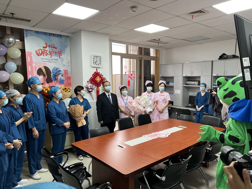 为庆祝第112个国际护士节,5月12日一早,中南大学湘雅三医院院长江泓带领医院护理部及相关职能部门看望慰问奋斗在临床一线的护理工作者并为他们送上节日祝福和问候。