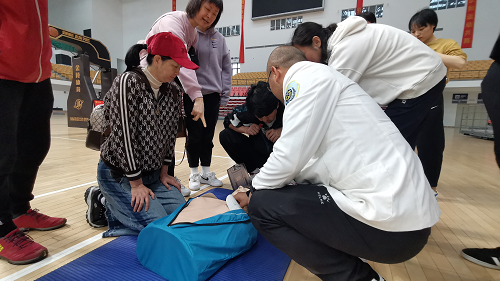 急救培训师资团队以心肺复苏术和AED的使用为培训重点,进行全流程演示、分步骤讲解,给参培教师们留下了初步的、系统的、流畅的印象。每位参培教师在指导下认真实践、逐一练习,并接受了现场考核过关,确保了培训的质量和效率,使每位参培教师能真正地学有所得,学能所用。