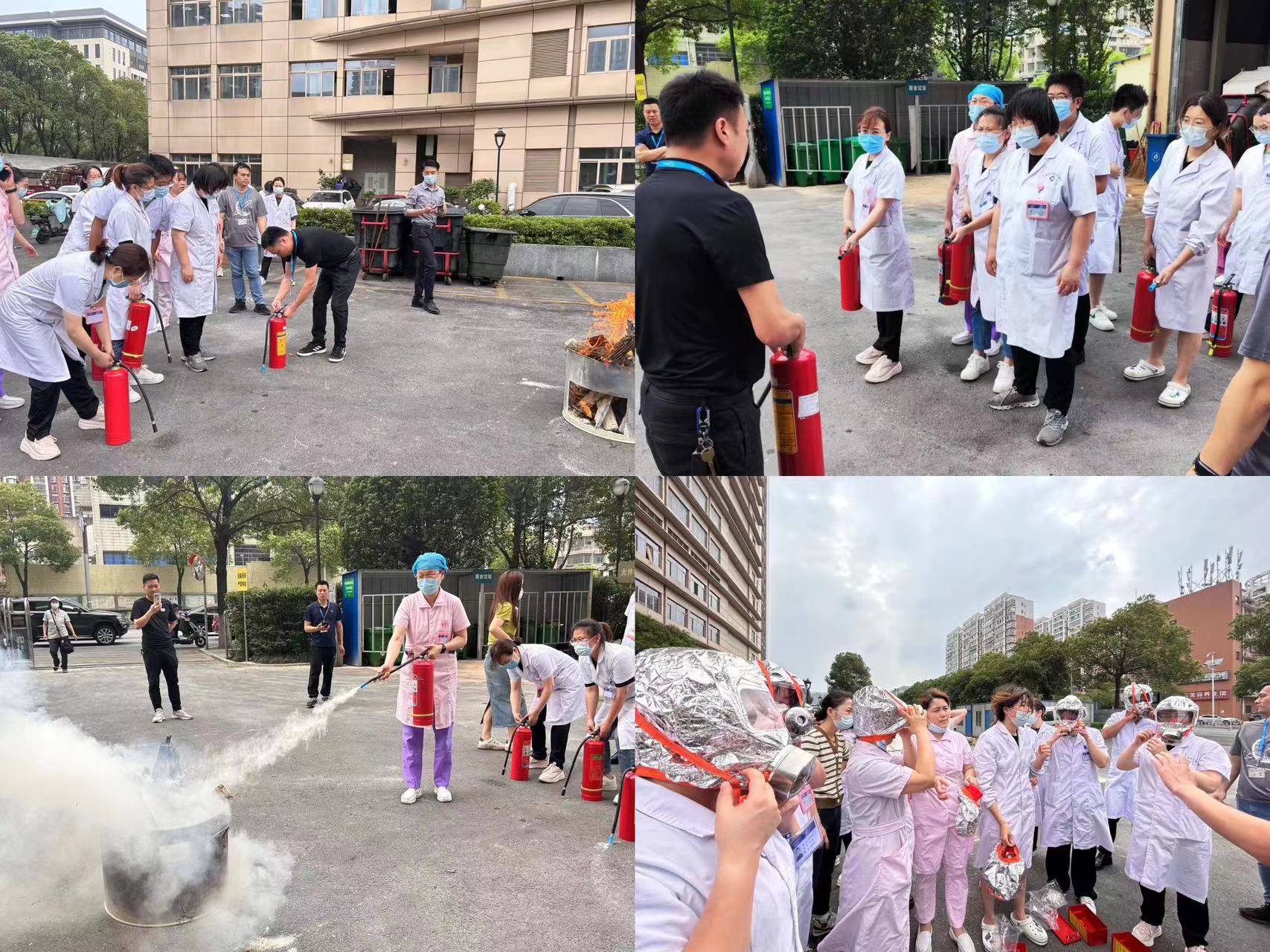 演练结束后,医院安全保卫部还对产科医护进行灭火器及消防面罩的使用培训。