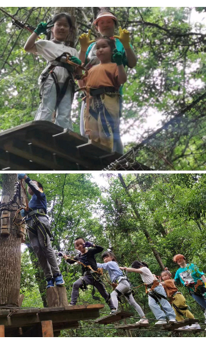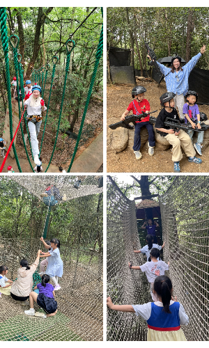 上午9点30许,天气多云转晴,40余户家庭陆续抵达大明休闲生态山庄。现场完成签到后,在工作人员的介绍和带领下分组开展了一系列趣味团建活动。首先是丛林穿越,红/蓝/黑线三选一,集冒险、运动、娱乐、挑战于一体的树上运动,考验成员们的团队协作能力,培养了大家的团队合作精神。接着小朋友们和家长进行了真人CS活动,考验队员之间的默契程度。一系列的项目进行之后,大家都表示本次活动举办得非常有意义。