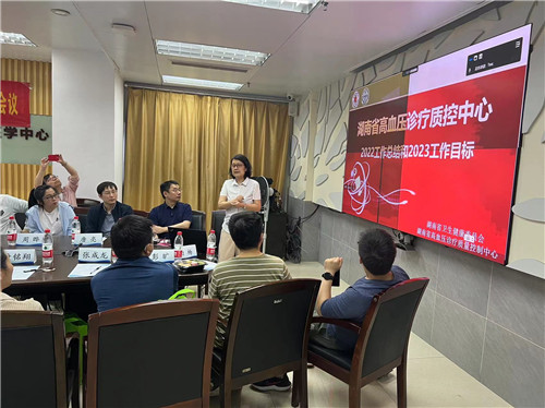 蒋卫红教授对质控中心2022年工作进行了总结,并对2023年工作进行了规划与部署。截止至2022年,省内已建立区域质控中心9个,涵盖了永州、邵阳、怀化、益阳、湘乡、浏阳、株洲、郴州、岳阳,这些区域质控中心的建立,大大推动了省内相关地级市高血压规范化诊疗工作的开展。2023年将督促委员单位尽快成立区域诊疗质控中心,负责全市本专业质控工作的实施,对医疗卫生机构进行质控和评价;负责本市本专业医疗质量信息的收集、统计、分析和评价,并对质控信息真实性进行抽查复核;同时指导县级质控中心开展质控工作。